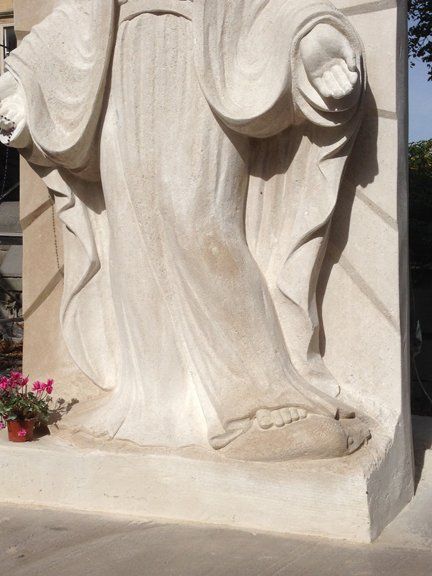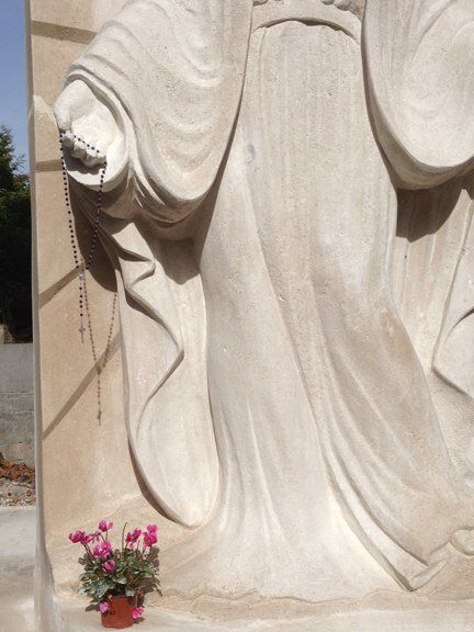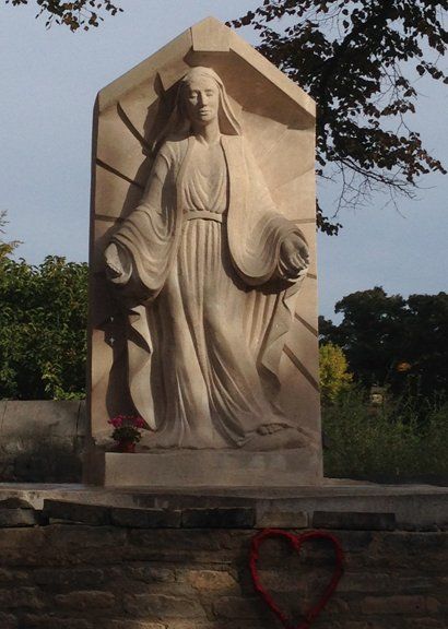 The statue is part of the regeneration of the garden at the back of the church, which proved to be an amazing studio for the duration of Ben's carving giving local residents and visitors to the city the chance to see him working the huge block of stone, day by day. And slowly as the figure of Mother Mary emerged in the stone, he began to find her in his heart. Ben says "I began to see Mother Mary bit by bit, it was as if she were reveling herself to me not only in the stone but in the very core of my being".