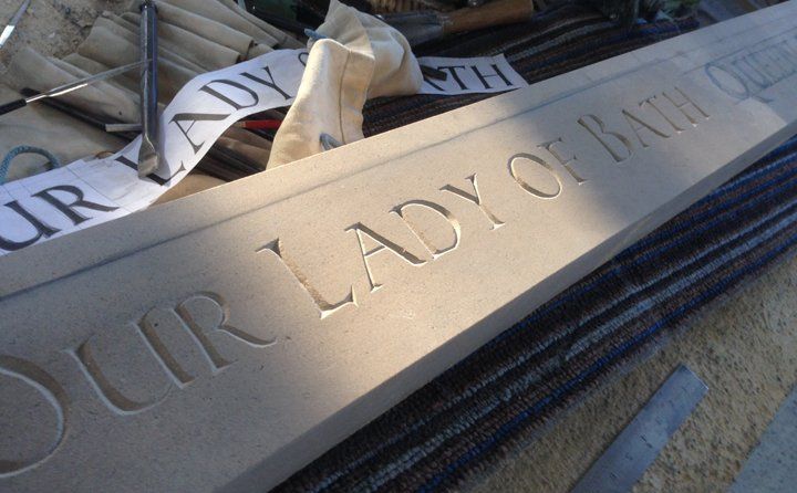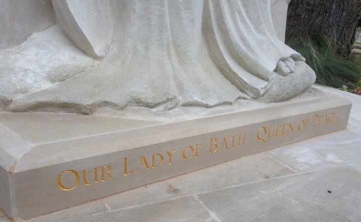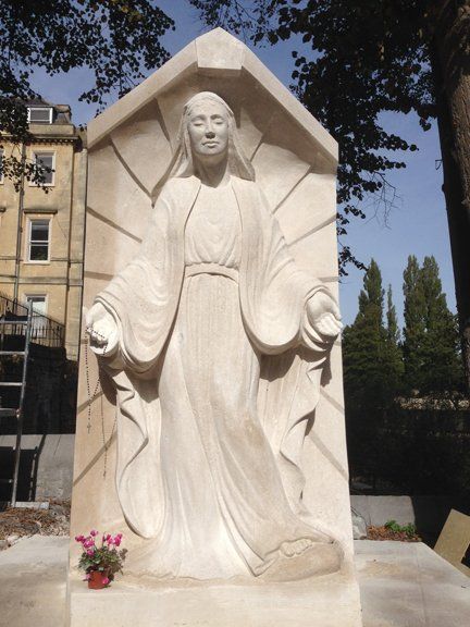 The largest single block of stone in Bath is the 7.5 tonnes of Portland stone which was delivered and then carved on site on the banks of the river Avon in the garden of St John The Evangelist Roman Catholic Church in the summer of 2018. The opening ceremony in October saw the completion of the 3 month long project with a beautiful late Autumn day to celebrate the transformation of this garden.