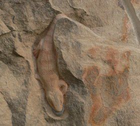This 4.8-tonne stone also features a map reference of the two rivers, the Hunter and the Goulburn, along with a depiction of a Blue Tongue who is carved into the east face.